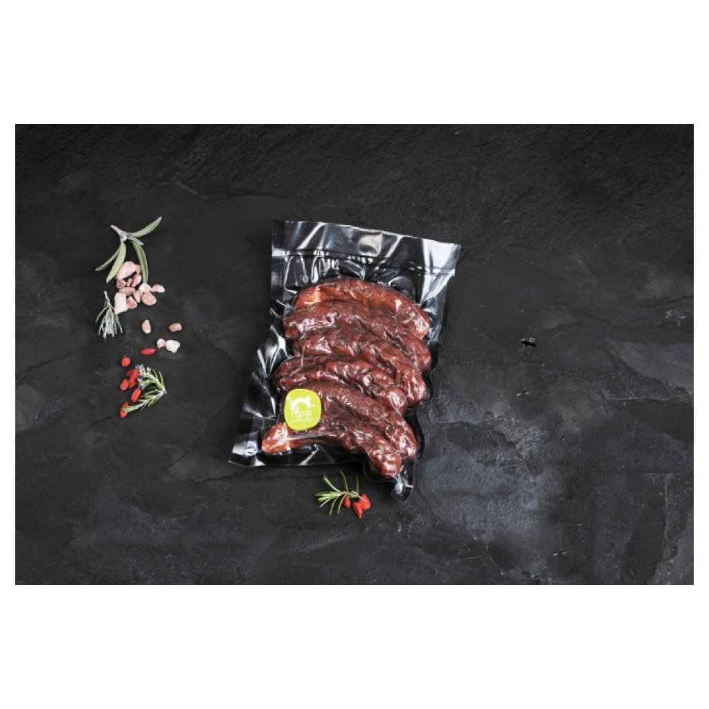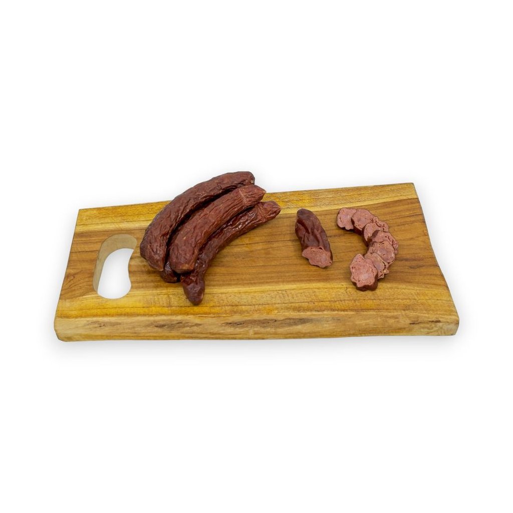 Naše jehněčí klobásy jsou vyrobeny ručně z vyzrálého hovězího a jehněčího masa v BIO kvalitě. Jsou uzené tradičním způsobem na bukovém a ovocném dřevě (trnka, třešeň).