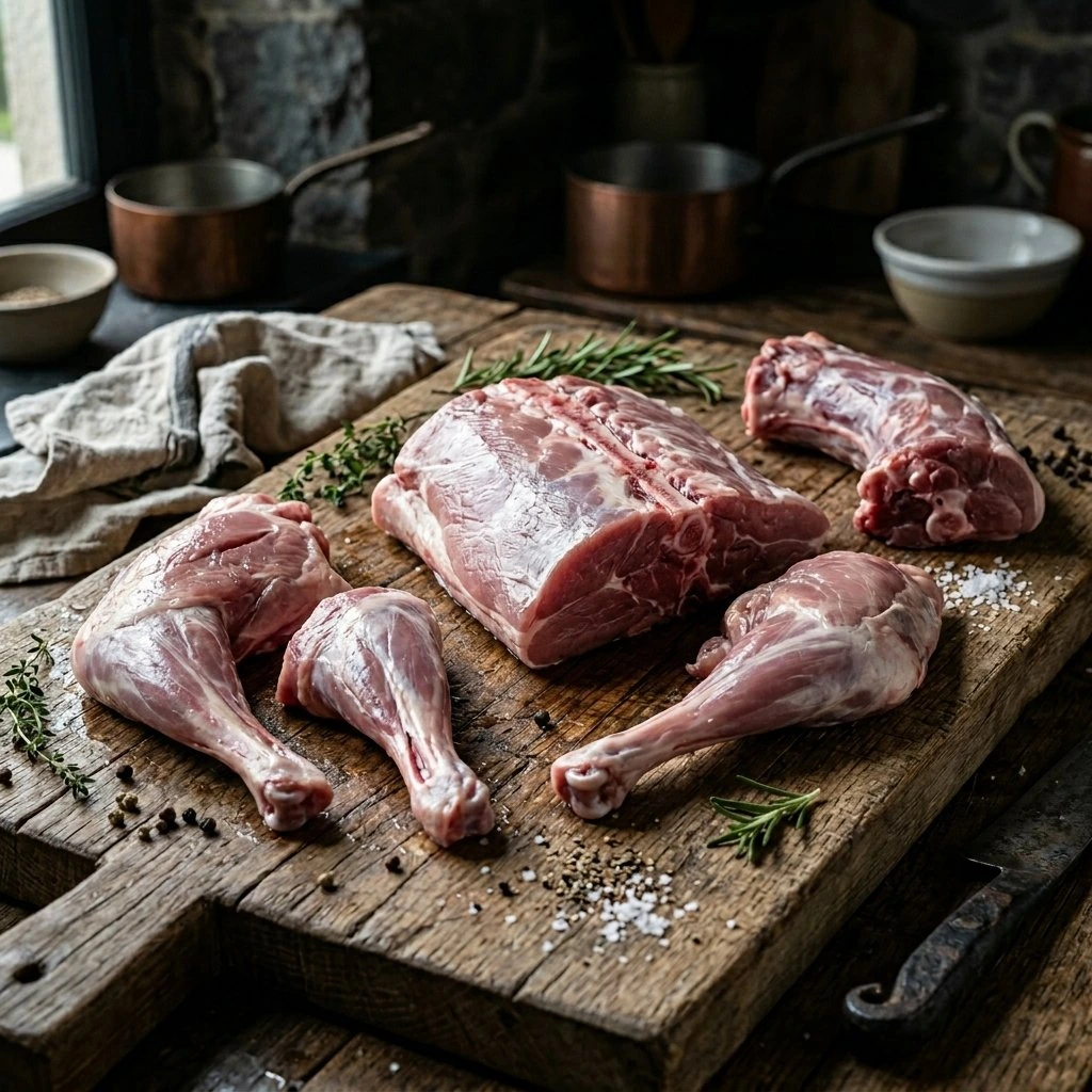 Kůzlečí JUT je vakuově balen a obsahuje půlku zvířete v podélném řezu. Neobsahuje vnitřnosti